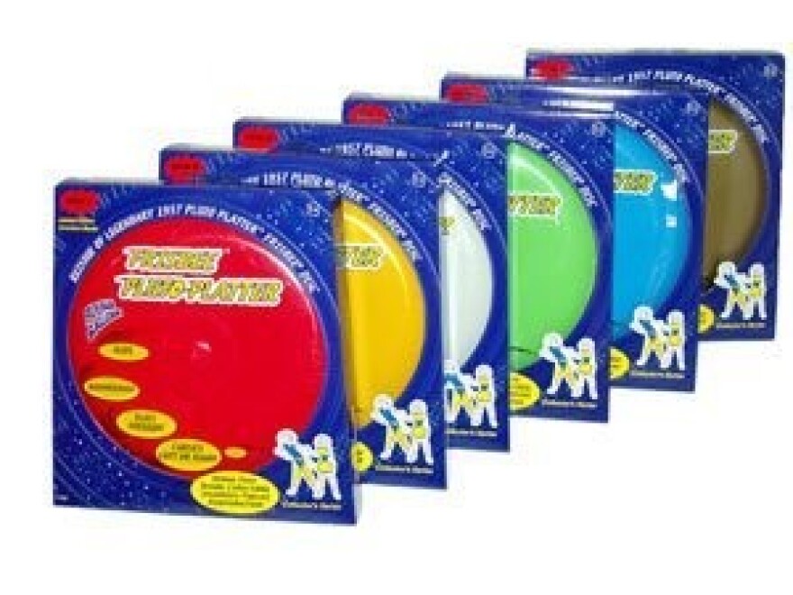 - 1957 --- Machines at the Wham-O toy company roll out the first batch of their aerodynamic plastic discs--now known to millions of fans all over the world as Frisbees. The story of the Frisbee began in Bridgeport, Connecticut, where William Frisbie opened the Frisbie Pie Company in 1871. Students from nearby universities would throw the empty pie tins to each other, yelling "Frisbie!" as they let go.In 1948, Walter Frederick Morrison and his partner Warren Franscioni invented a plastic version of the disc called the "Flying Saucer" that could fly further and more accurately than the tin pie plates. After splitting with Franscioni, Morrison made an improved model in 1955 and sold it to the new toy company Wham-O as the "Pluto Platter"--an attempt to cash in on the public craze over space and Unidentified Flying Objects (UFOs). In 1958, a year after the toy's first release, Wham-O--the company behind such top-sellers as the Hula-Hoop, the Super Ball and the Water Wiggle--changed its name to the Frisbee disc, misspelling the name of the historic pie company. A company designer, Ed Headrick, patented the design for the modern Frisbee in December 1967, adding a band of raised ridges on the disc's surface--called the Rings--to stabilize flight. By aggressively marketing Frisbee-playing as a new sport, Wham-O sold over 100 million units of its famous toy by 1977. High school students in Maplewood, New Jersey, invented Ultimate Frisbee, a cross between football, soccer and basketball, in 1967. In the 1970s, Headrick himself invented Frisbee Golf, in which discs are tossed into metal baskets; there are now hundreds of courses in the U.S., with millions of devotees. There is also Freestyle Frisbee, with choreographed routines set to music and multiple discs in play, and various Frisbee competitions for both humans and dogs--the best natural Frisbee players. Today, at least 60 manufacturers produce the flying discs--generally made out of plastic and measuring roughly 20-25 centimeters (8-10 inches) in diameter with a curved lip. The official Frisbee is owned by Mattel Toy Manufacturers, who bought the toy from Wham-O in 1994.