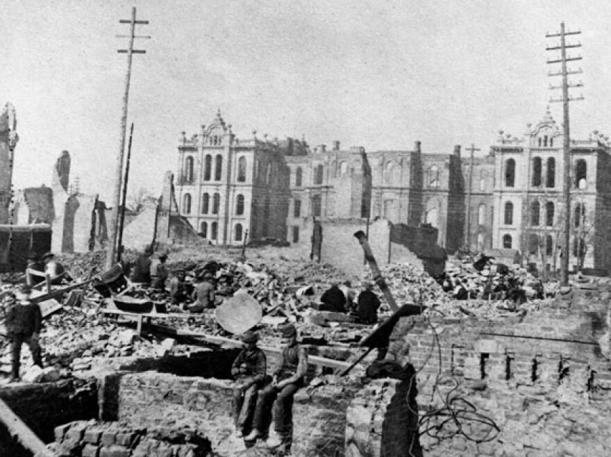 district, in ruins. Dry weather and an abundance of wooden buildings, streets and sidewalks made Chicago vulnerable to fire. The city averaged two fires per day in 1870; there were 20 fires throughout Chicago the week before the Great Fire of 1871. Despite the fire's devastation, much of Chicago's physical infrastructure, including its water, sewage and transportation systems, remained intact. Reconstruction efforts began quickly and spurred great economic development and population growth, as architects laid the foundation for a modern city featuring the world's first skyscrapers. At the time of the fire, Chicago's population was approximately
