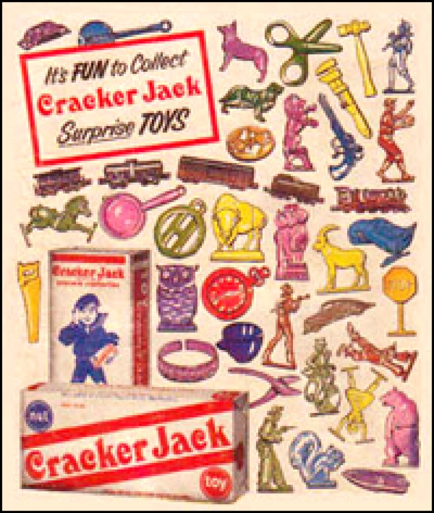 - 1913 --- Cracker Jack began to put prizes in each box.