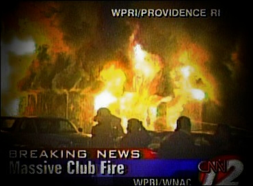 - 2003 --- A fire at a rock concert in a West Warwick, Rhode Island, nightclub kills 100 people and seriously injures almost 200 more. A local news crew was on hand at the Station nightclub to report on the issue of nightclub safety. (Four days earlier, 21 people had been killed during a stampede at a club in Chicago.) Helping out with the report was Jeffrey Derderian, who co-owned the Station with his brother Michael. That night, they were expecting a full house to see the heavy-metal band Great White. Just after 11 p.m., near the beginning of the show, Daniel Biechele, Great White's tour manager, set off some pyrotechnics behind the performers, which set fire to the soundproofing foam on the ceiling. For a short time, no onerealized the severity of the situation. As the fire spread rapidly, though, panic ensued. Most of the 400 people at the concert attempted to leave the club through the front entrance. As black smoke filled the club's interior, the desperate rush of people to the front entrance caused a pile-up, trapping people where they stood. Though firefighters, who responded within minutes, worked hard to
