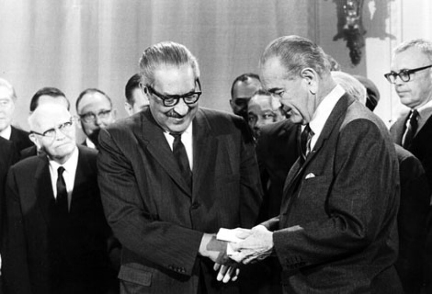 - 1967 --- President Lyndon Johnson appoints U.S. Court of Appeals Judge Thurgood Marshall to fill the seat of retiring Supreme Court Associate Justice Tom C. Clark, making him the first African American in history to sit on America's highest court.