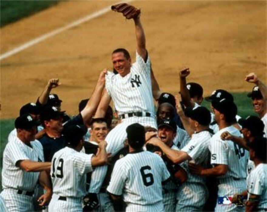 - 1999 --- David Cone of the New York Yankees pitched the 14th perfect game in modern major league baseball history in a game against the Montreal Expos.