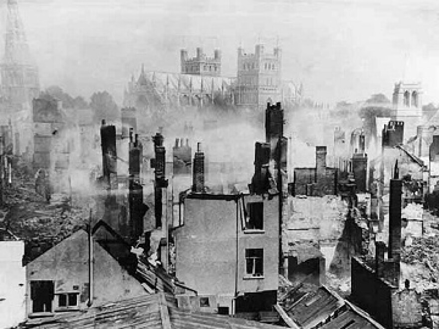 - 1942 --- German bombers strike Exeter and later Bath, Norwick, York, and other “medieval-city centres.” Almost 1,000 English civilians are killed in the bombing attacks nicknamed “Baedeker Raids.” The Germans attacked cathedral cities of great historical significance. The 15th-century Guildhall, in York, as an example, was destroyed. The Germans called their air attacks “Baedeker Raids,” named for the German publishing company famous for guidebooks popular with tourists. The Luftwaffe vowed to bomb every building in Britain that the Baedeker guide had awarded “three stars.”