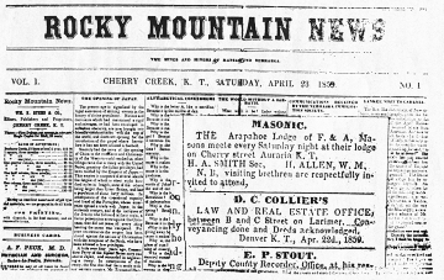 - 1859 --- Beating a rival publisher by a mere 20 minutes, William Byers distributes the first newspaper ever published in the frontier boomtown of Denver, Colorado. In honor of the rugged mountain range that rose up abruptly to the west of Denver, Byers named his new venture in frontier journalism The Rocky Mountain News. Byers remained the editor and publisher of the News until 1878.