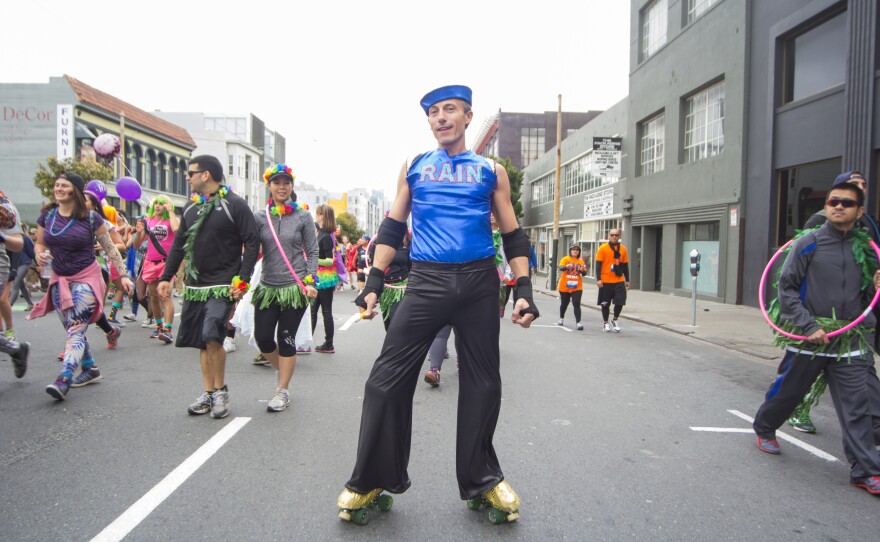 CLAUDIA KELLERSCH: I've been nude in the Bay to Breakers every single year ... I'm wearing a little fanny pack where I'm hiding my underwear, and I have really good race running shoes. And I have a hat that says "Bare to Breakers!"